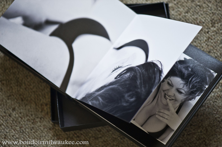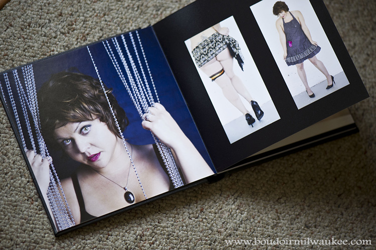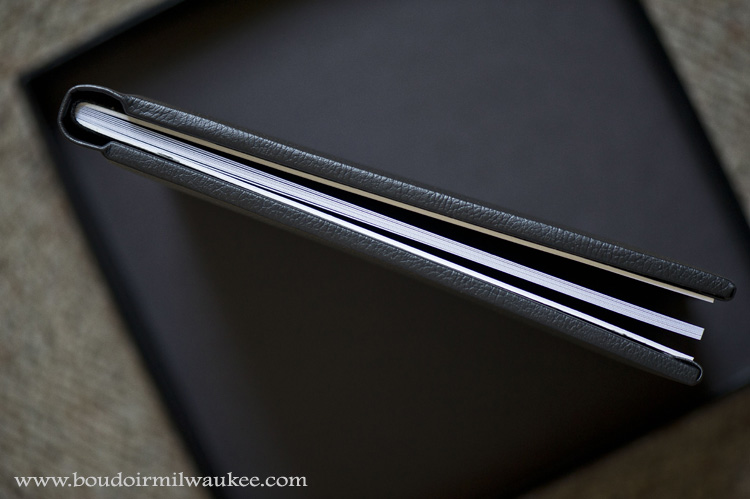 This is a fabulously gorgeous 8×8 leather coffee table book available to the ladies. It lays flat for a seamless design and is just beautiful!
